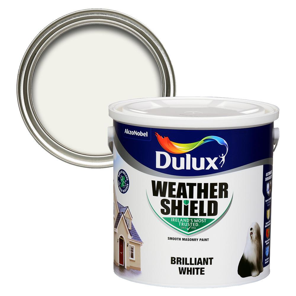 Dulux Weathershield Smooth Exterior Masonry paint is Made in Ireland to protect Irish homes from our unique weather. The Ultimate Durability formula with Superior Flexibility protects the paint from cracking and flaking, while Superior Colour Retention ensures colours stay true and Superior Mould Resistance works against mould and algae growth for longer thanks to slow-release encapsulated biocide technology. Dulux Weathershield Ultimate Durability is our most durable exterior paint ever. - Fast Shower Resistance - Protection against Cracking & Flaking - Superior Colour Retention Application Method: - Brush or Roller Base: - Water Cleaning: - Garden Brush or Hose Coverage: - 16m? per litre Disposal: - Check Local Recycling Centre Drying Time: - 2-4 hours These times will be significantly longer in cold, damp conditions Drying Time Recoating: - 2-4 hours These times will be significantly longer in cold, damp conditions Durability: - High Fade Resistant: - Yes Finishing Type: - Matt Manufacturing Warranty: - We promise our paint will give you the perfect colour with a uniform finish and the coverage stated, or we'll replace it. T&C's apply: dulux.ie/promise Number of Coats Required: - 2 Product Type: - Masonry Stain Resistant: - Yes Storage: - Keep in a dry/cool place standing upright Suitable Surface: - Masonry