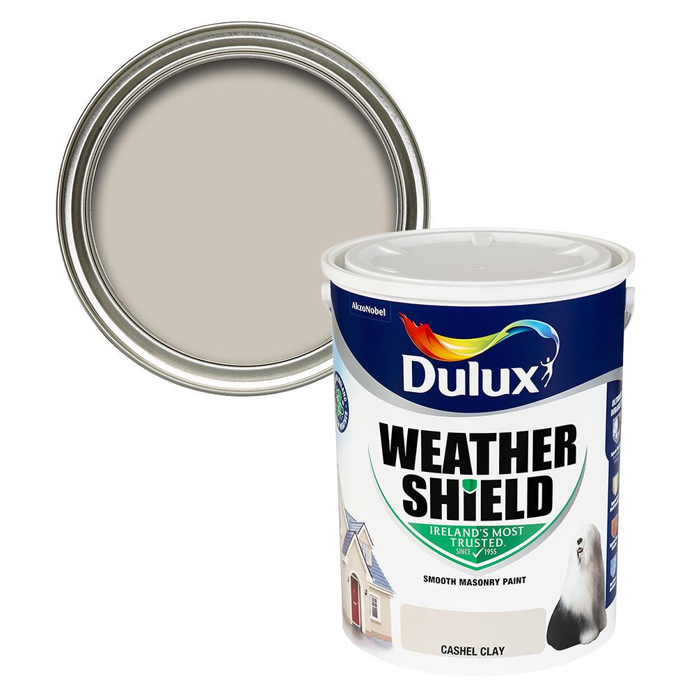 Dulux Weathershield Smooth Exterior Masonry paint is Made in Ireland to protect Irish homes from our unique weather. The Ultimate Durability formula with Superior Flexibility protects the paint from cracking and flaking, while Superior Colour Retention ensures colours stay true and Superior Mould Resistance works against mould and algae growth for longer thanks to slow-release encapsulated biocide technology. Dulux Weathershield Ultimate Durability is our most durable exterior paint ever. - Fast Shower Resistance - Protection against Cracking & Flaking - Superior Colour Retention Application Method: - Brush or Roller Base: - Water Cleaning: - Garden Brush or Hose Coverage: - 16m? per litre Disposal: - Check Local Recycling Centre Drying Time: - 2-4 hours These times will be significantly longer in cold, damp conditions Drying Time Recoating: - 2-4 hours These times will be significantly longer in cold, damp conditions Durability: - High Fade Resistant: - Yes Finishing Type: - Matt Manufacturing Warranty: - We promise our paint will give you the perfect colour with a uniform finish and the coverage stated, or we'll replace it. T&C's apply: dulux.ie/promise Number of Coats Required: - 2 Product Type: - Masonry Stain Resistant: - Yes Storage: - Keep in a dry/cool place standing upright Suitable Surface: - Masonry