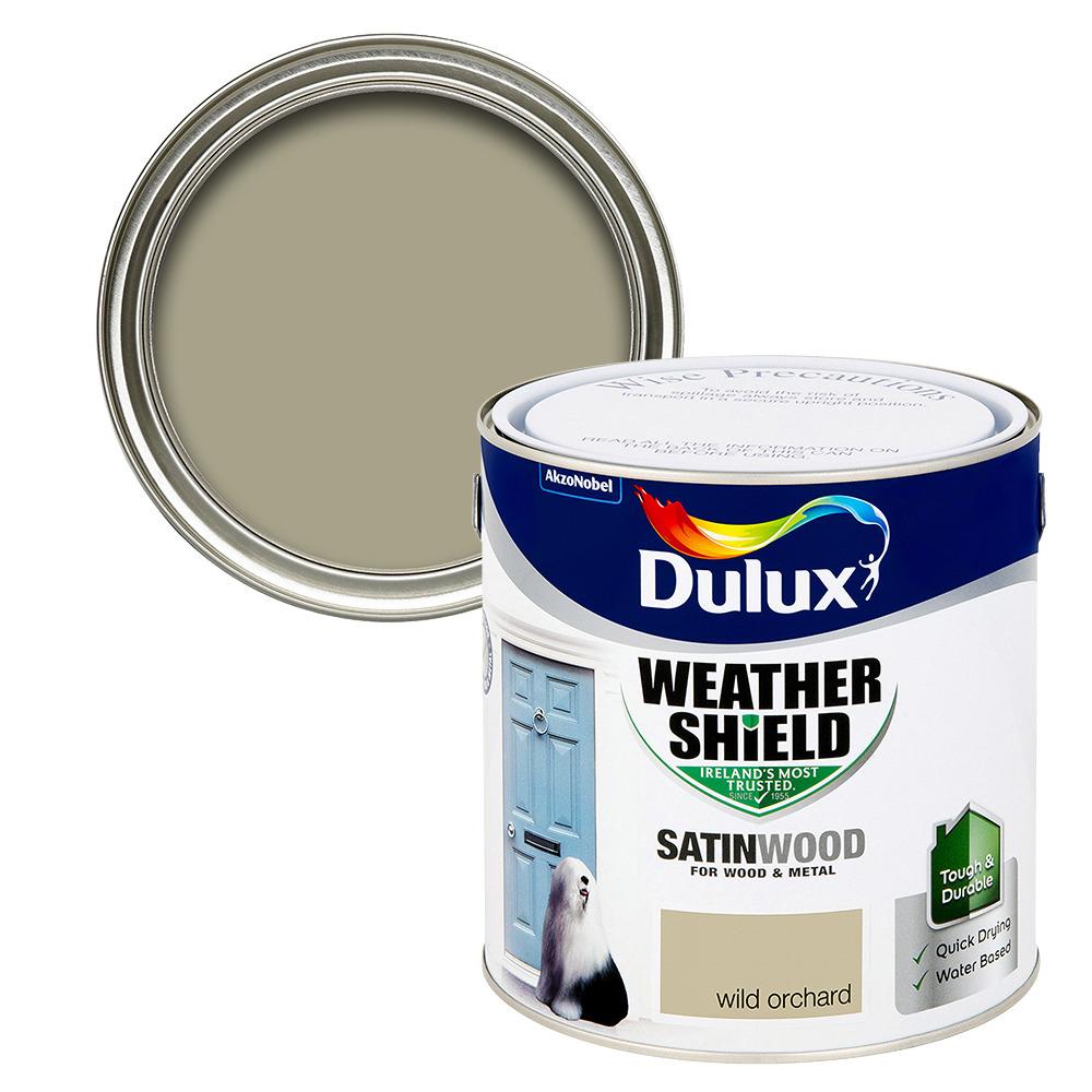 Dulux Weathershield Exterior Satinwood is a tough and durable water based finish suitable for exterior wood and metal. - Tough & Durable - Weatherproof - Quick Drying Application Method: - Brush or Roller Base: - Water Cleaning: - Warm Soapy water Coverage: - 18m2 per litre Disposal: - Check Local Recycling Centre Drying Time: - 3-6 hours Drying Time Recoating: - 3-6 hours Durability: - High Fade Resistant: - Yes Finishing Type: - Satin Manufacturing Warranty: - We promise our paint will give you the perfect colour with a uniform finish and the coverage stated, or we'll replace it. T&C's apply: dulux.ie/promise Number of Coats Required: - 2 Product Type: - Satinwood Stain Resistant: - Yes Storage: - Keep in a dry/cool place standing upright Suitable Surface: - Exterior Wood and Metal