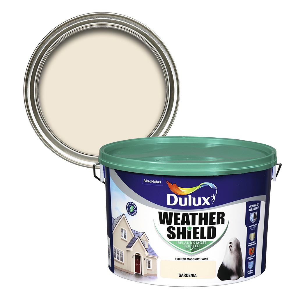Dulux Weathershield Smooth Exterior Masonry paint is Made in Ireland to protect Irish homes from our unique weather. The Ultimate Durability formula with Superior Flexibility protects the paint from cracking and flaking, while Superior Colour Retention ensures colours stay true and Superior Mould Resistance works against mould and algae growth for longer thanks to slow-release encapsulated biocide technology. Dulux Weathershield Ultimate Durability is our most durable exterior paint ever. - Fast Shower Resistance - Protection against Cracking & Flaking - Superior Colour Retention Application Method: - Brush or Roller Base: - Water Cleaning: - Garden Brush or Hose Coverage: - 16m? per litre Disposal: - Check Local Recycling Centre Drying Time: - 2-4 hours These times will be significantly longer in cold, damp conditions Drying Time Recoating: - 2-4 hours These times will be significantly longer in cold, damp conditions Durability: - High Fade Resistant: - Yes Finishing Type: - Matt Manufacturing Warranty: - We promise our paint will give you the perfect colour with a uniform finish and the coverage stated, or we'll replace it. T&C's apply: dulux.ie/promise Number of Coats Required: - 2 Product Type: - Masonry Stain Resistant: - Yes Storage: - Keep in a dry/cool place standing upright Suitable Surface: - Masonry