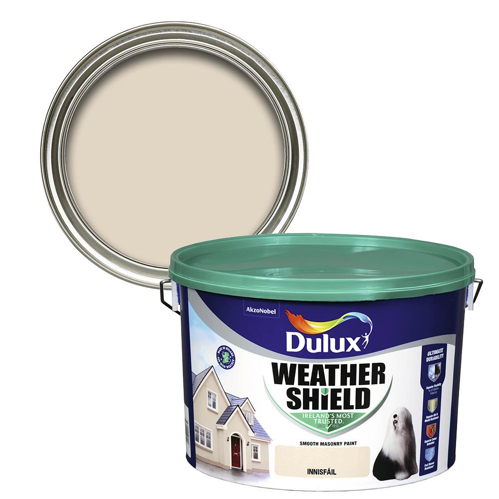 Dulux Weathershield Smooth Exterior Masonry paint is Made in Ireland to protect Irish homes from our unique weather. The Ultimate Durability formula with Superior Flexibility protects the paint from cracking and flaking, while Superior Colour Retention ensures colours stay true and Superior Mould Resistance works against mould and algae growth for longer thanks to slow-release encapsulated biocide technology. Dulux Weathershield Ultimate Durability is our most durable exterior paint ever. - Fast Shower Resistance - Protection against Cracking & Flaking - Superior Colour Retention Application Method: - Brush or Roller Base: - Water Cleaning: - Garden Brush or Hose Coverage: - 16m? per litre Disposal: - Check Local Recycling Centre Drying Time: - 2-4 hours These times will be significantly longer in cold, damp conditions Drying Time Recoating: - 2-4 hours These times will be significantly longer in cold, damp conditions Durability: - High Fade Resistant: - Yes Finishing Type: - Matt Manufacturing Warranty: - We promise our paint will give you the perfect colour with a uniform finish and the coverage stated, or we'll replace it. T&C's apply: dulux.ie/promise Number of Coats Required: - 2 Product Type: - Masonry Stain Resistant: - Yes Storage: - Keep in a dry/cool place standing upright Suitable Surface: - Masonry