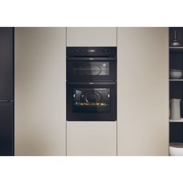 Series 2 collection offers different color options and is characterized by a perfect balance of shapes with precise and symmetrical lines. The handle is composed by two different materials: black satin plastic and brushed stainless steel. The logo is positioned on the handle. This range represents the entry collection of Haier BI ovens.